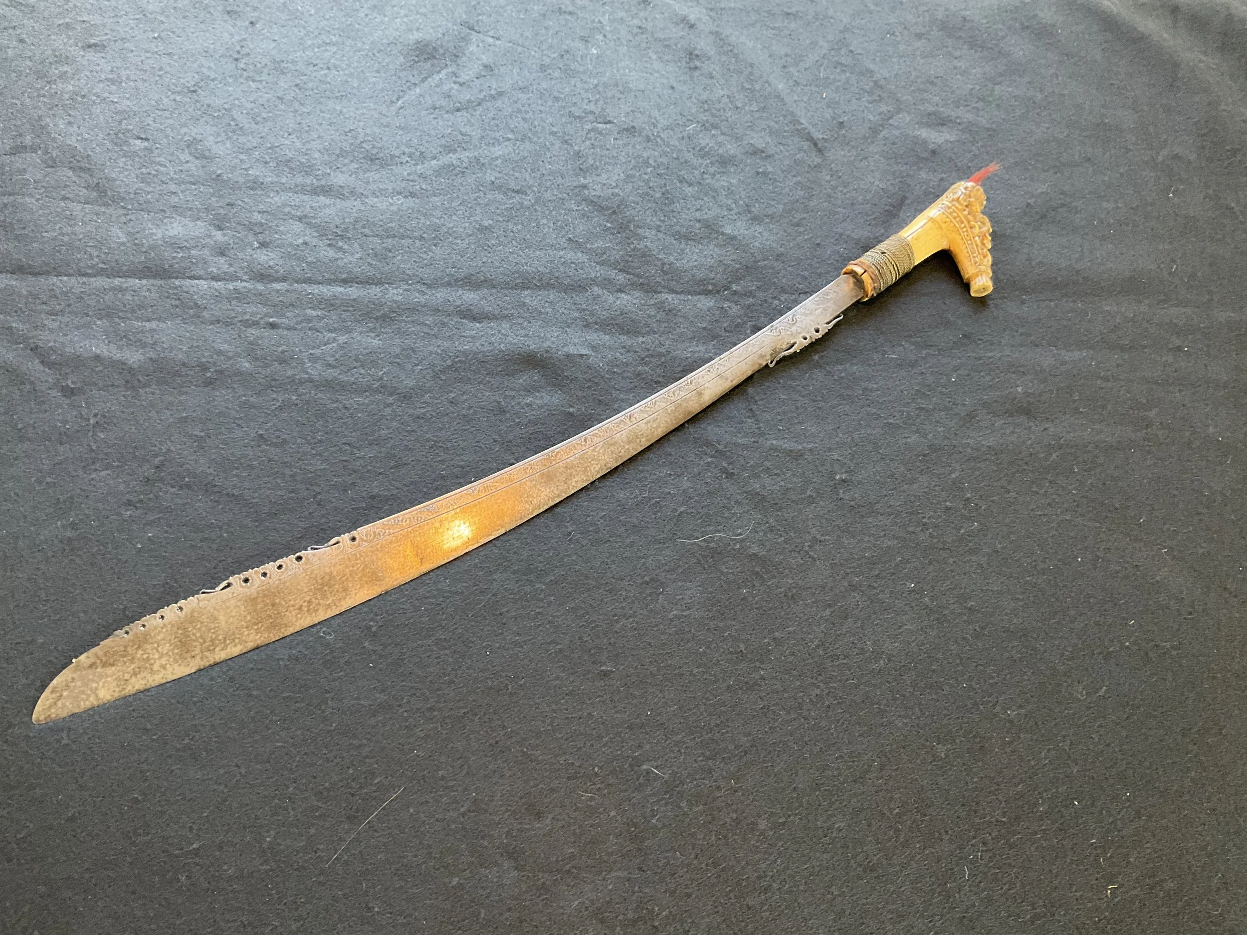 Filipino Sword with Unusual Handle and Decorated Blade