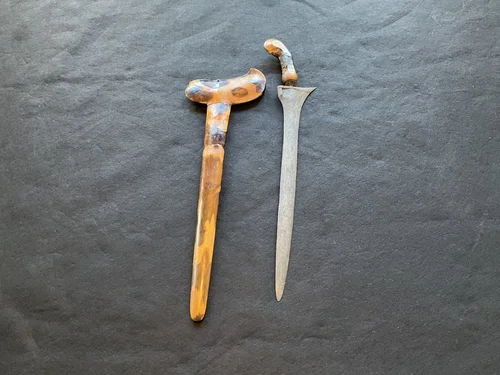 Indian Dagger with Stone Horsehead Handle and Pattern Welded Blade